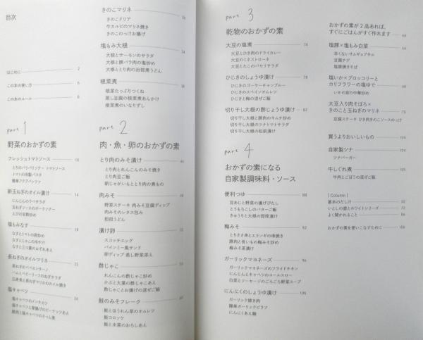 はじめに この本の使い方 この本のルール 食材のおいしさが長もちする!いろんな料理に使いまわせる Part1/野菜のおかずの素 Part2/肉・魚・卵のおかずの素 Part3/乾物のおかずの素 Part4/おかずの素になる自家製調味料・ソース 基本のだし汁 いとしの壺とホワイトシリーズ よく聞かれること おかずの素を使いこなすために