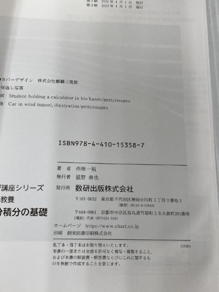 数研講座シリーズ 大学教養 微分積分の基礎 数研出版 市原 一裕
