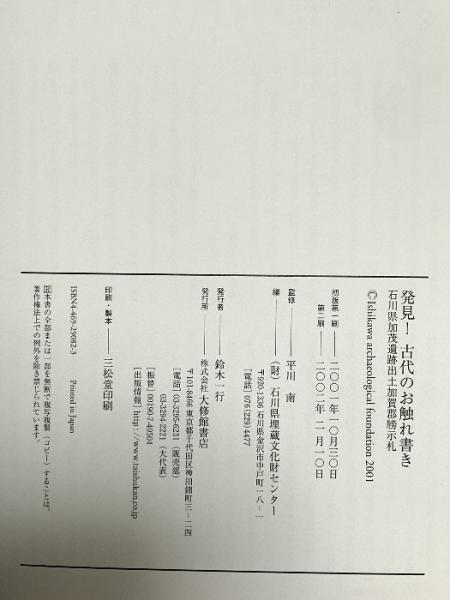 発見古代のお触れ書き: 石川県加茂遺跡出土加賀郡ぼう示札 大修館書店 石川県埋蔵文化財センター