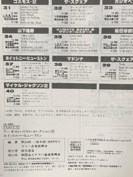 アーチスト・ベスト・コレクション37 エレクトーンで弾く ホイットニー・ヒューストン 1989年 財団法人ヤマハ音楽振興会