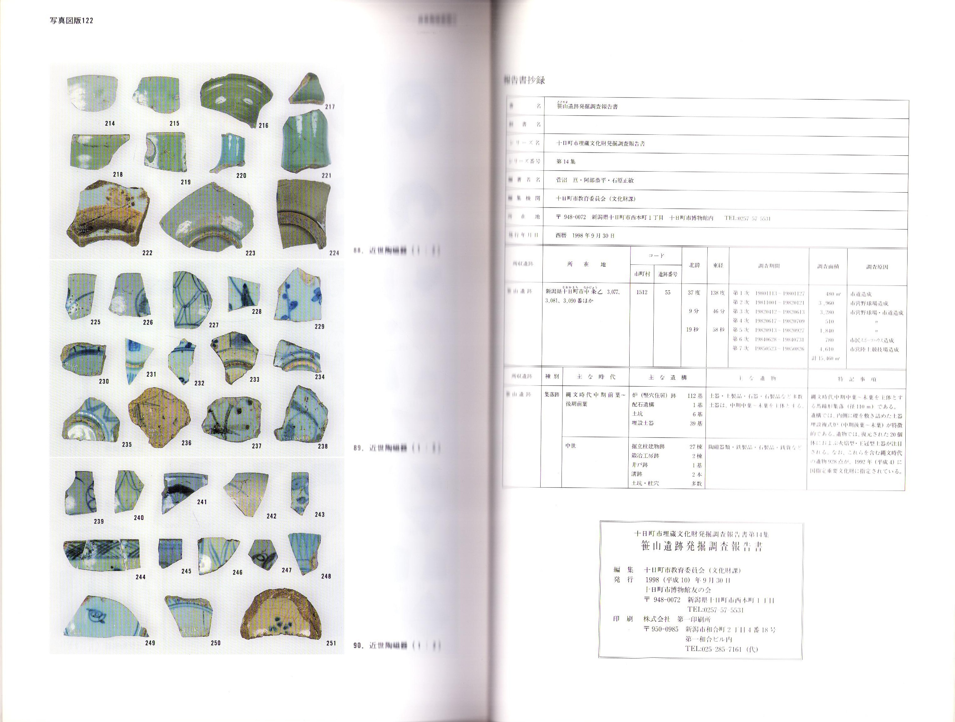 笹山遺跡発掘調査報告書 -十日町市埋蔵文化財発掘調査報告書 第14集-(新潟県)