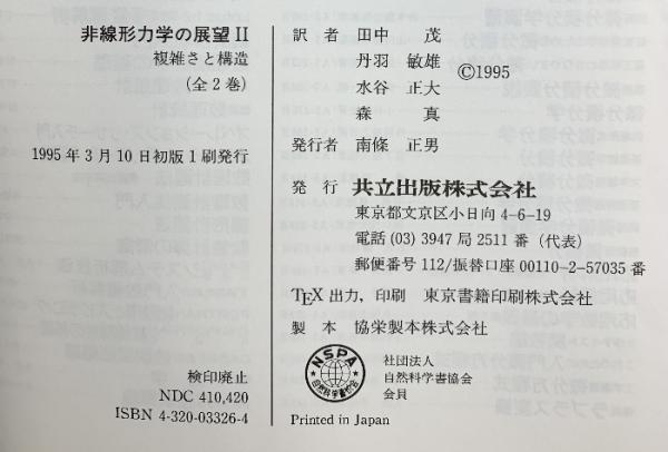 非線形力学の展望II 複雑さと構造 共立出版 EdwinAtlee Jackson