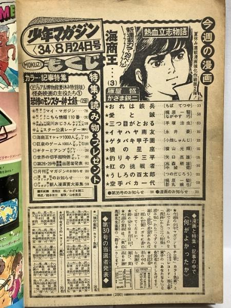 (18) 週刊少年マガジン No.34 昭和50年8月24日発行 講談社 ちばてつや 手塚治虫 矢口高雄 雁屋哲 かざま鋭二