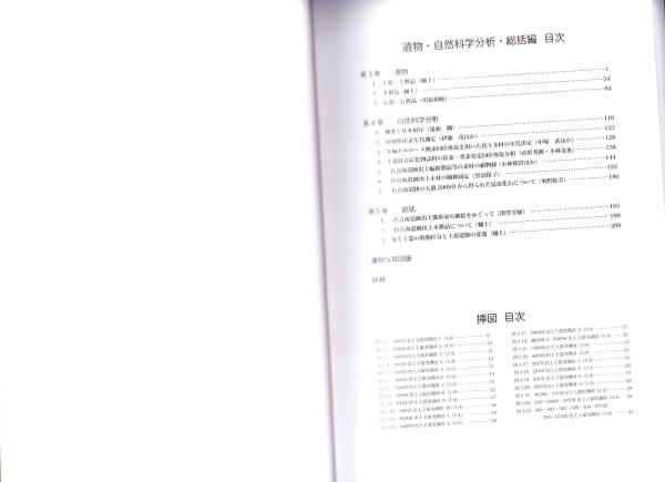 • 解説 美本、A4判、函、〈遺構編 本文198頁、写真図版76頁〉〈遺物・自然科学分析・統括編 本文216頁、写真図版44頁〉