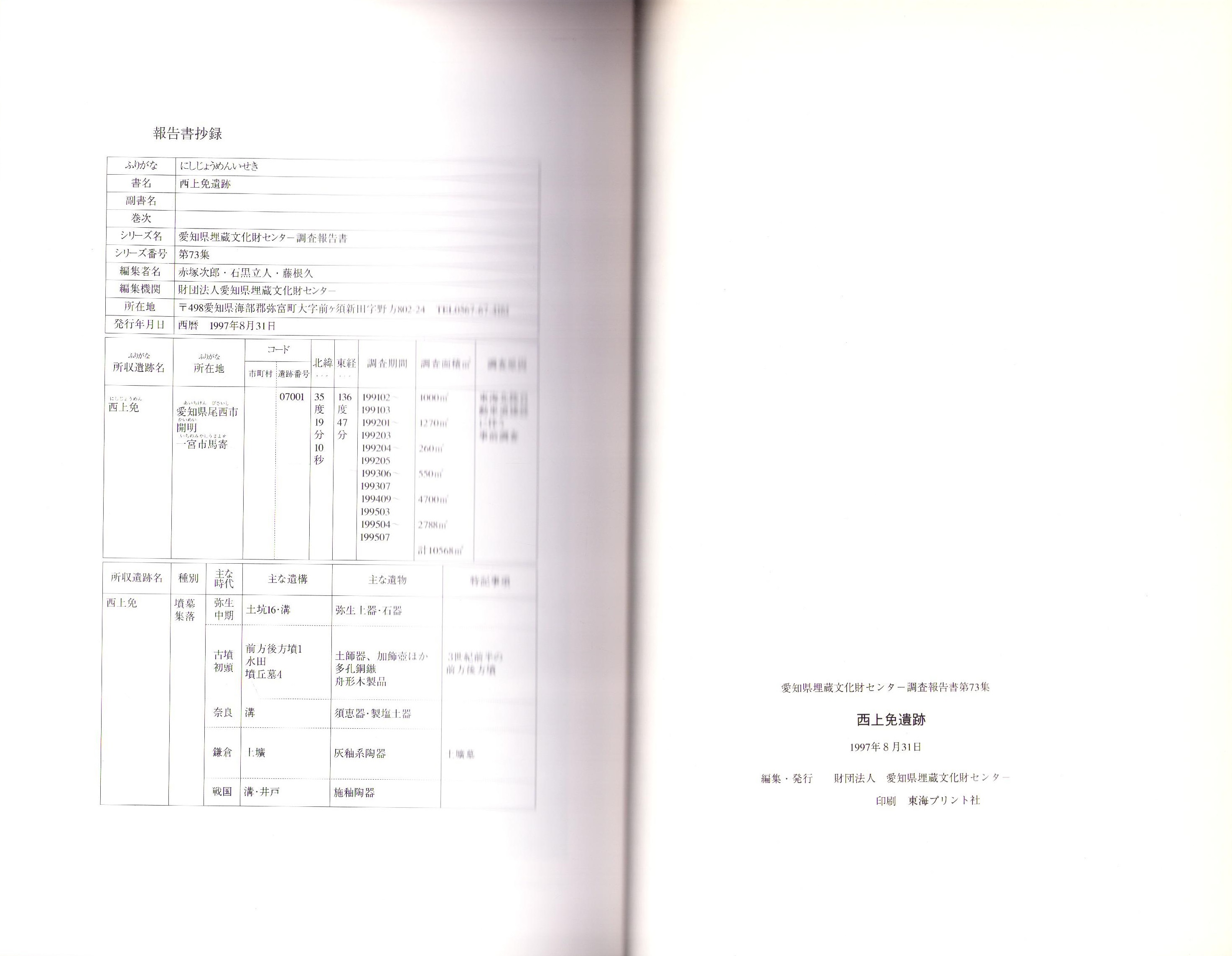 西上免遺跡 -愛知県埋蔵文化財センター調査報告書 第73集-(愛知県)