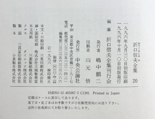 折口信夫全集 (20) 民族史観における他界観念・神道宗教化の意義―神道・国学論 中央公論新社 折口 信夫