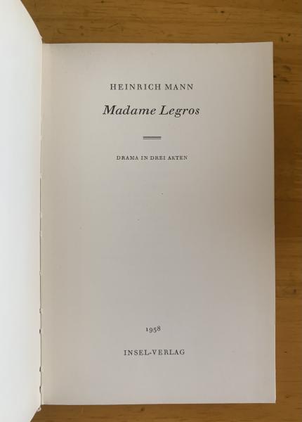 【インゼル文庫649】HEINRICH MANN Madame Legros Drama ハインリヒ・マン/戯曲