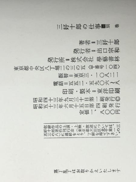 三好十郎の仕事〈別巻〉 (1968年)