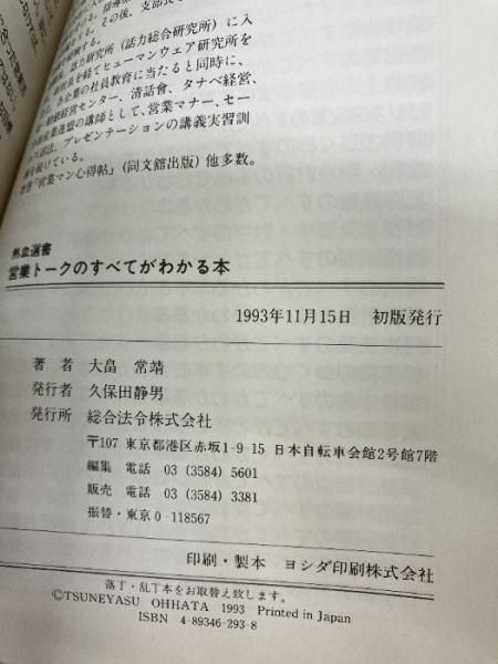営業トークのすべてがわかる本 (熱血選書) 総合法令 大畠 常靖
