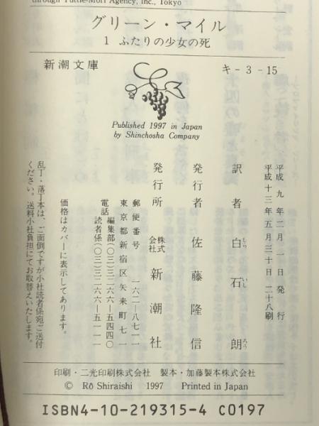 1,2,3,4(4冊セット)グリーン・マイル 新潮文庫 スティーヴン・キング/白石朗=訳 小池真理子/我孫子武丸「解説」 養老孟司「キングの作品について」