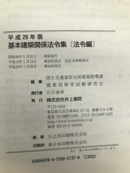 基本建築関係法令集 法令編 平成29年版 井上書院 国土交通省住宅局建築指導課