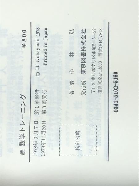 数学トレーニング〈続〉―数学的な思考力をのばすために (1978年)  東京図書 小林 弘