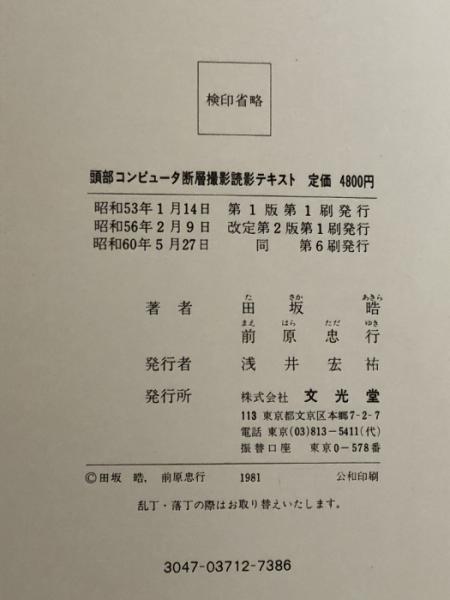 頭部コンピュータ断層撮影読影テキスト (1978年) 文光堂 田坂 晧