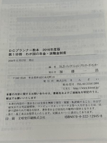 DCプランナー教本2016年度版 第1分冊 わが国の年金・退職金制度 きんざい きんざいファイナンシャル・プランナーズ・センター