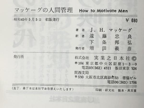 マッケーグの人間管理 (1970年) 実業之日本社 J.H.マッケーグ