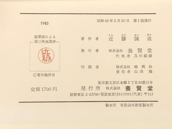 基準面による第三角法図学 (1985年) 養賢堂 近藤 誠造