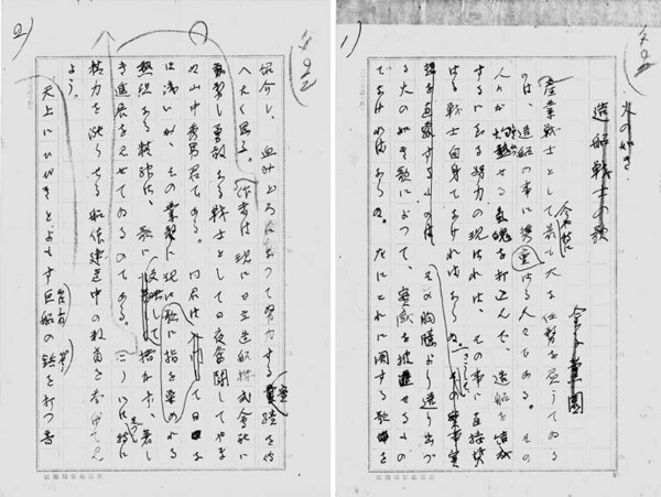 • 解説 『火の如き造船戦士の歌』 ペン書 200字詰原稿用紙6枚完 日立造船所に勤務する山中秀夫氏の短歌を紹介する。(種別)評論 #八木書店近代自筆物/1.草稿類 #94号近代文学特輯 code02045 ※自筆物につきましては、毎月25日前後に新蒐品を追加しております。PDF形式で御覧になりたい方は https://company.books-yagi.co.jp/archives/news/10928 を参照ください。