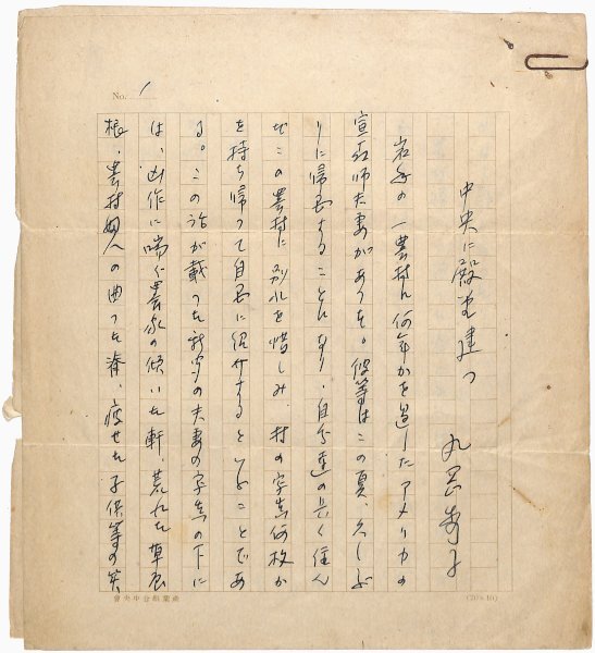 • 解説 『中央に殿堂建つ』 ペン書 200字詰原稿用紙4枚完 痛み劣化 「産業組合中央會」の原稿用紙を使用。(種別)評論 #八木書店近代自筆物/1.草稿類 code08843 ※自筆物につきましては、毎月25日前後に新蒐品を追加しております。PDF形式で御覧になりたい方は https://company.books-yagi.co.jp/archives/news/10928 を参照ください。