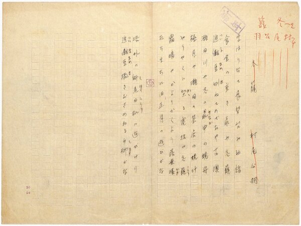 • 解説 『冬籠』 ペン書 480字詰原稿用紙1枚完 「まはり出て展望台や初詣」等10句。大正~昭和初期において、新聞・雑誌の入稿媒体として実際に利用された草稿。(種別)俳句 #八木書店近代自筆物/1.草稿類 #94号近代文学特輯 code04810 ※自筆物につきましては、毎月25日前後に新蒐品を追加しております。PDF形式で御覧になりたい方は https://company.books-yagi.co.jp/archives/news/10928 を参照ください。