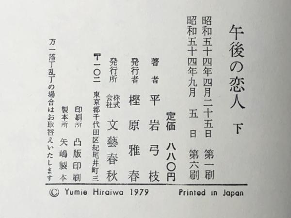 午後の恋人〈上・下〉 文藝春秋 平岩 弓枝