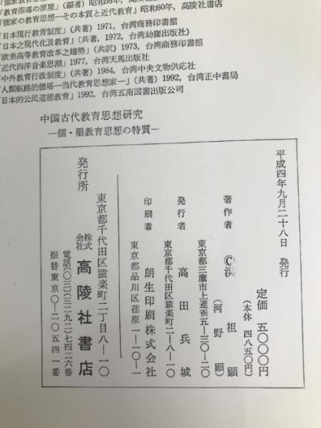 中国古代教育思想研究: 儒・墨教育思想の特質 高陵社書店 洪祖顕