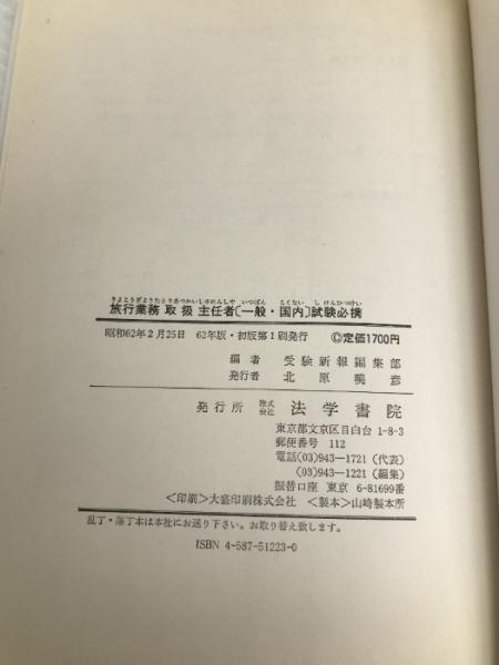 旅行業務取扱主任者試験必携<一般・国内> (62年版) (国家試験受験シリ-ズ) 法学書院 受験新報編集部