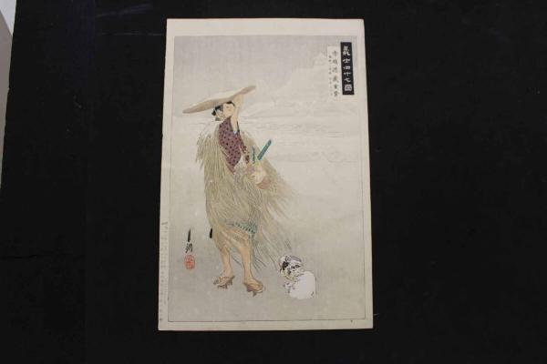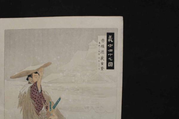 5 5 真作 義士四十七図 赤垣源蔵重覧 尾形月耕画 木版彩色刷 約26×23.5㎝