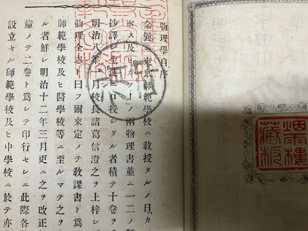 • 解説 ガノー,カツケンボス,デシヤネル等の物理書より訳述。裸本。中表紙、序文p1、本文p1に印あり。ノド少割れ。小口頁ヤケ。