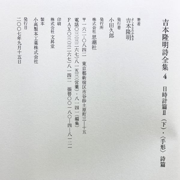 吉本隆明詩全集 (4) 1951-1954 思潮社 吉本 隆明