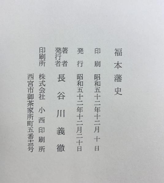 播州福本藩史 著発行:長谷川義徹 昭和52年 (兵庫県)