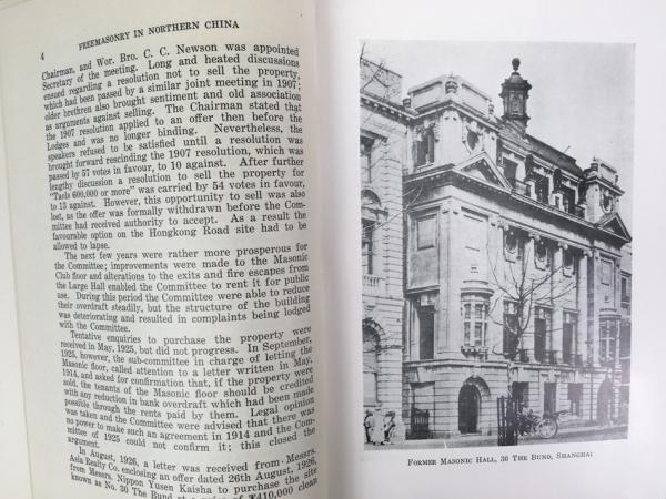 『北部中国のフリーメーソンの歴史 1913-1937』 私家版 1938年 上海刊:ケリー・ウォルシ / The History of Freemasonry in Northern China 1913 - 1937. Privately printed by Kelly & Walsh, Limited, Shanghai, 1938