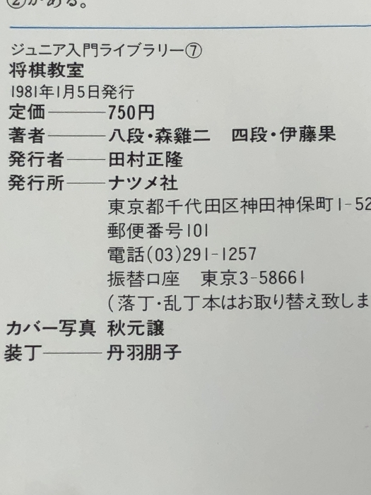 将棋教室―こうすればお父さん・仲間に勝てる (1981年) (ジュニア入門ライブラリー) ナツメ社 森 鶏二