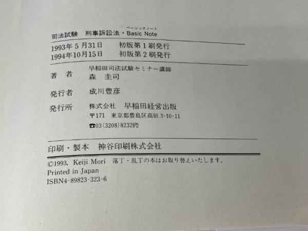 司法試験刑事訴訟法ベーシックノート 早稲田経営出版