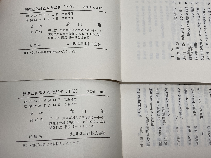神道と仏教とをただす 日本人の宗教意識とキリスト教 上下揃