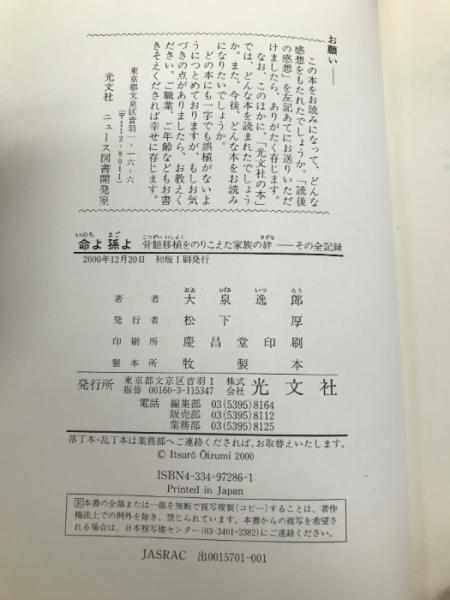 命よ孫よ: 骨髄移植をのりこえた家族の絆-その全記録 光文社 大泉 逸郎