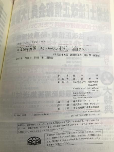 ナンバーワン社労士必修テキスト 平成20年度版 (社労士ナンバーワンシリーズ) TAC出版 島中 豪