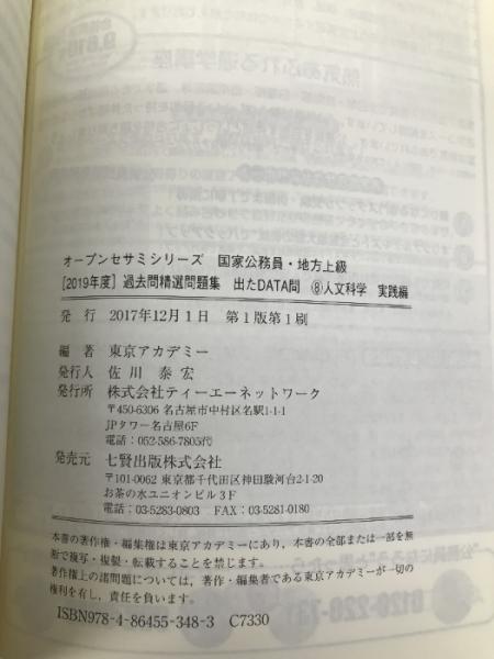 出たDATA問 8 人文科学 実践編 2019年度版 国家公務員・地方上級 (東京アカデミー編) 七賢出版 東京アカデミー
