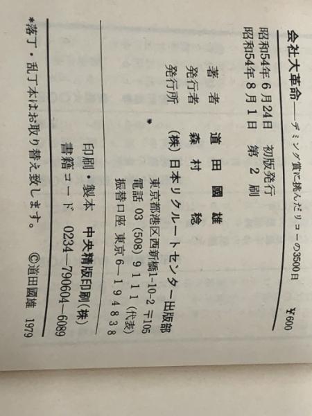 会社大革命―デミング賞に挑んだリコーの3500日 (1979年) (リクルート新書) 日本リクルートセンター出版部 道田 国雄