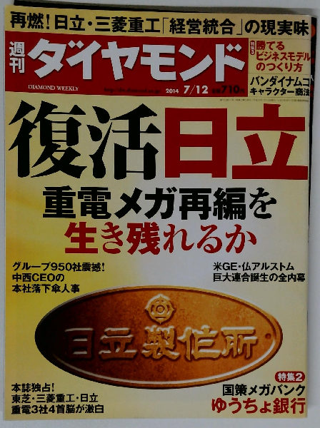 週刊ダイヤモンド2014年7/12号[雑誌]特集1 復活日立/重電メガ再編を生き残れるか/グループ950社震撼! 中西宏明 〝中央集権〟の凄み/再燃! 幻の3菱重工との経営統合の現実味/中西 日立CEO 宮永 重工社長に直撃! /グループ幹部人事にみる〝人心掌握〟全人脈マップ/米GEvs