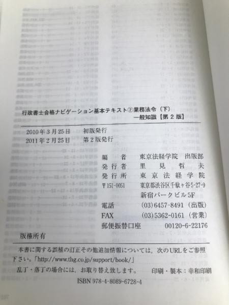 行政書士合格ナビゲーション基本テキスト 2 第2版 東京法経学院出版 東京法経学院出版部