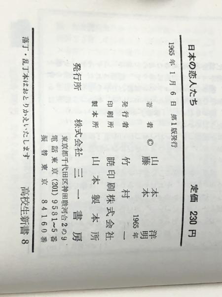 日本の恋人たち (1965年) (高校生新書) 三一書房 山本 洋