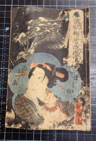 金瓶梅曽我賜宝 初編上 龍と婦人抱き猫図の版彩表紙 全2巻1冊