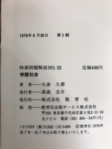 学歴社会 (1978年) (入門新書―時事問題解説〈no.32〉) 教育社 矢倉 久泰