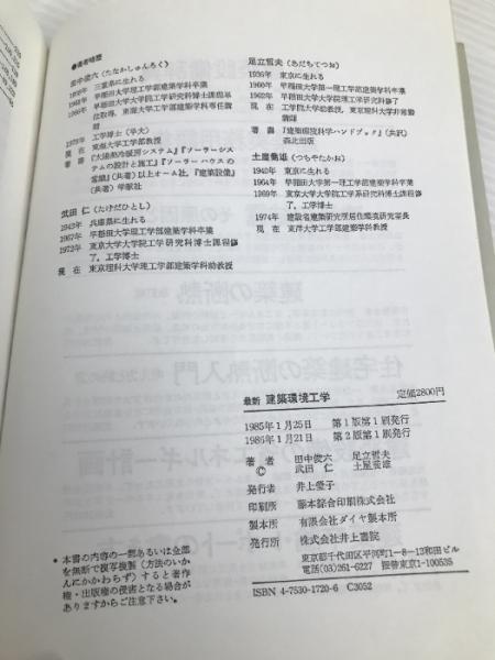 最新建築環境工学 井上書院 田中 俊六