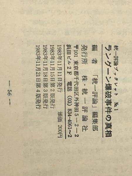 ラングーン爆破事件の真相―史上空前の国際的政治謀略劇 (1983年) (統一評論ブックレット〈no.1〉) 統一評論社