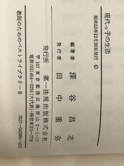 現代っ子の生活 (1978年) (教師のためのベストライブラリー〈8〉) 第一法規出版 深谷 昌志
