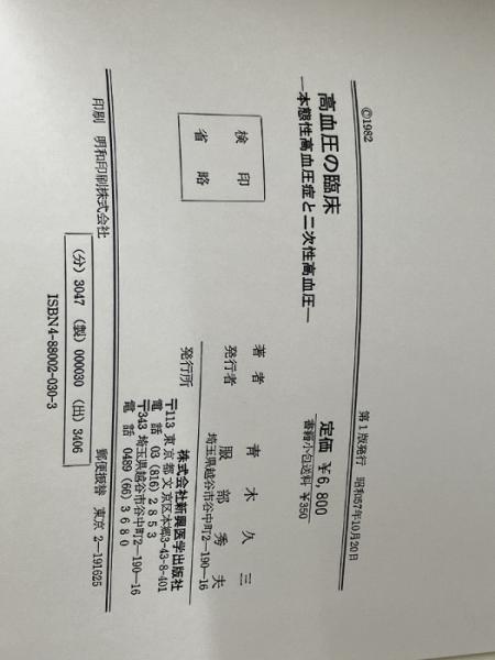 高血圧の臨床: 本態性高血圧症と二次性高血圧 新興医学出版社 青木 久三