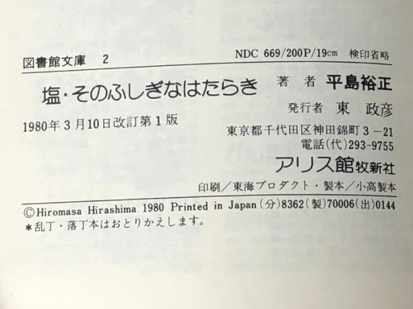 塩・そのふしぎなはたらき (1980年) (図書館文庫〈2〉) アリス館牧新社 平島 裕正