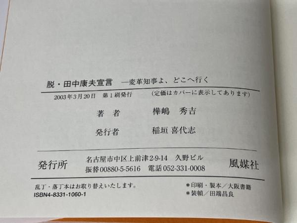脱・田中康夫宣言: 変革知事よ、どこへ行く 風媒社 樺嶋 秀吉