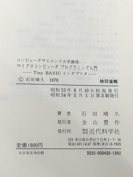 マイクロコンピュータプログラミング入門―Tiny BASIC インタプリタ (コンピュータサイエンス大学講座) 近代科学社 石田晴久